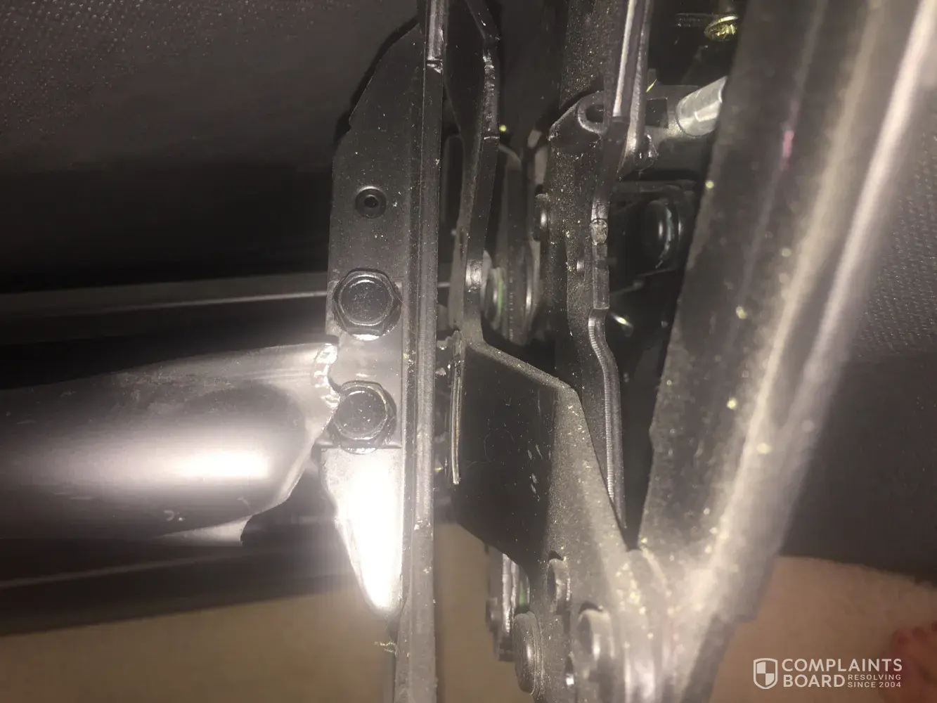 1. Staples under the fabric on the foot rests not completely driven, sticking into ankles and heels when reclined or closing recliner.