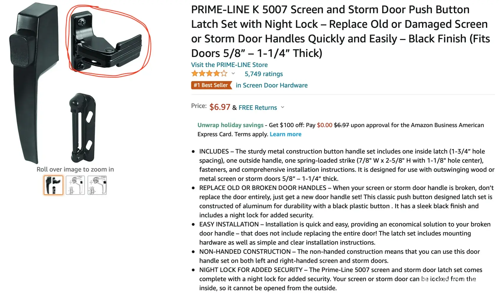 Prime-link k 5006, 5007 classic push-button design inside latch for screen door