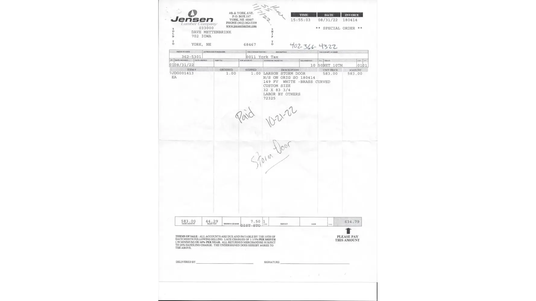On July 28, 2021, I ordered the above storm door from Maddux Lumber & Hardware in Lufkin, Texas. The closer was faulty and they reordered one.
