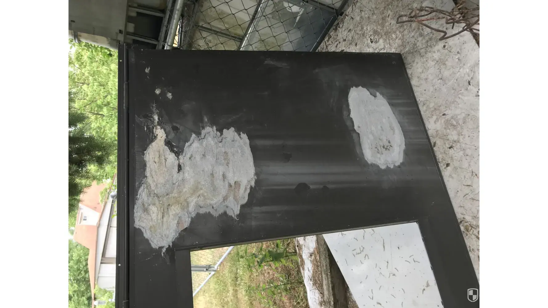 From the pictures attached, you can see the trail from the yuck on the mats and sidewalk.