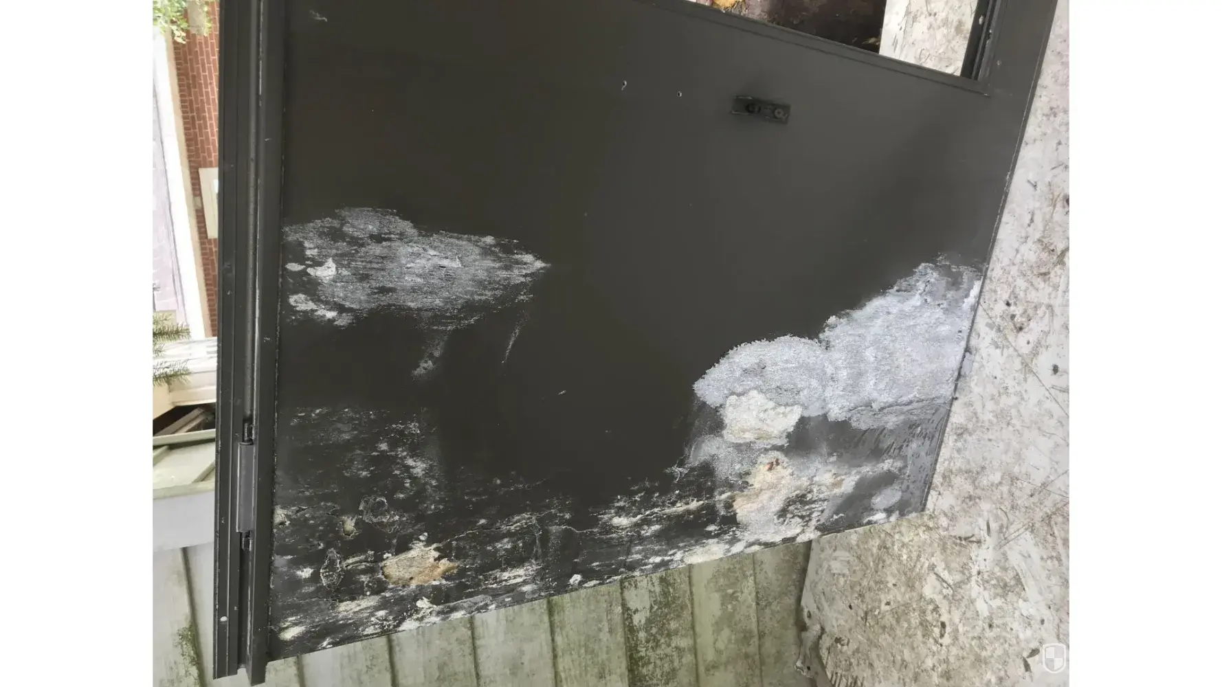 I had 3 Larson doors installed that were ordered by 84 lumber on 12/9/2019 and were installed in 2020. The doors have all had brown gunk coming out of the bottoms of door and have swelled from water being held in the bottom.