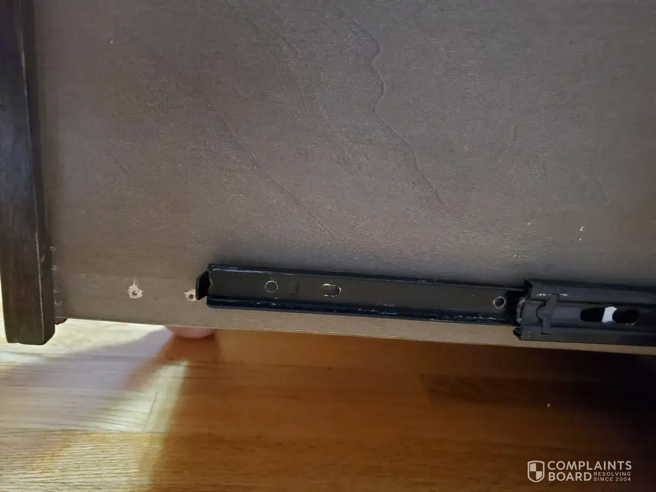 The actually broken area, technically can't be fixed because they ripped where it screws in. And waiting to fix, or new drawers, is RIDICULOUS providing how terrible and LONG there service is.
