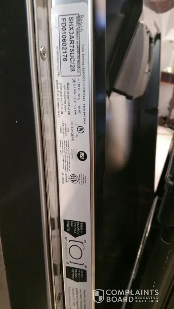 Bosch Ascenta SHX3AR75UC Dishwasher Damaged Order #[protected]
