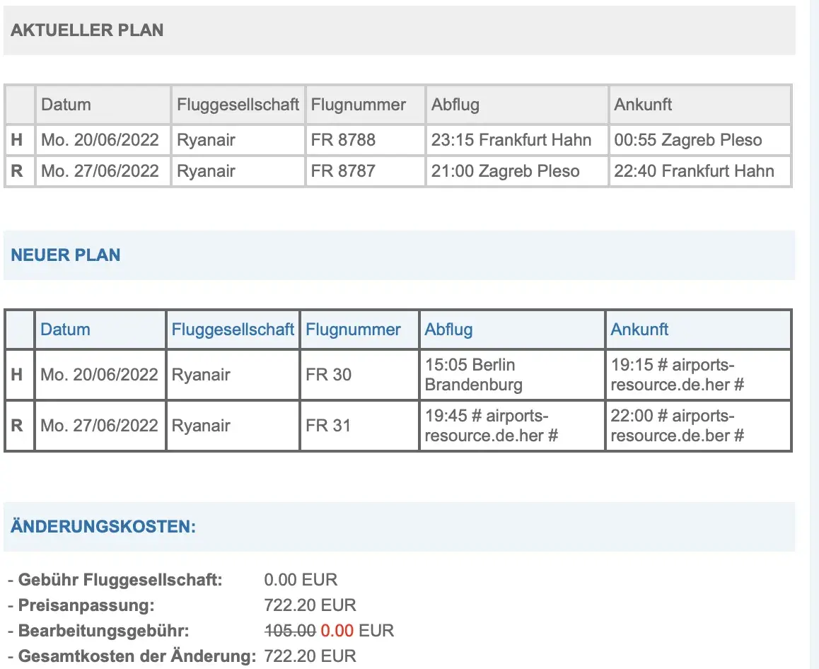 1. We asked for an offer for the combination Frankfurt - Kreta, Greece. We received an offer over 700€ for the change. We denied the offer.