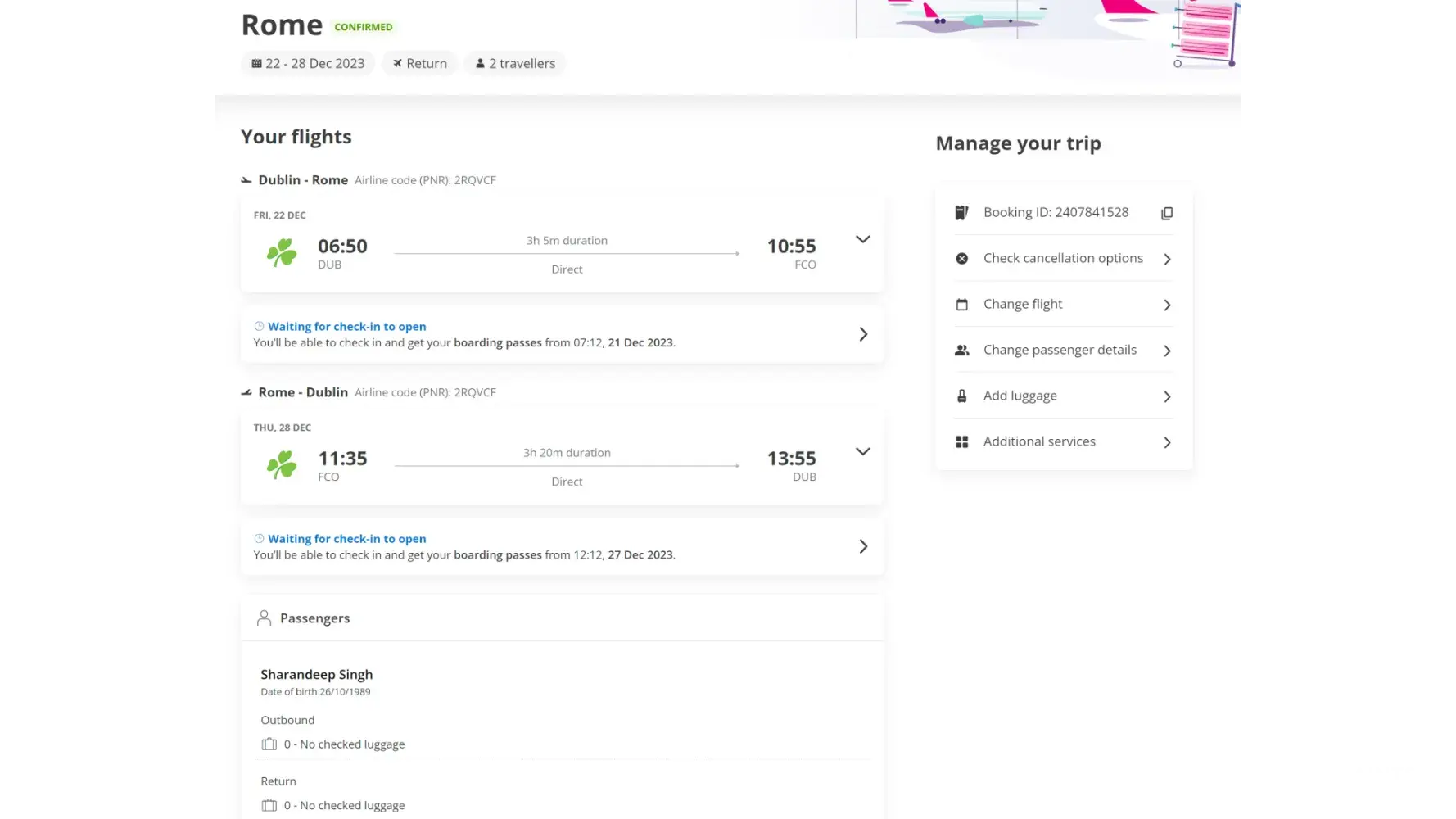 My flight is 29th July 2023