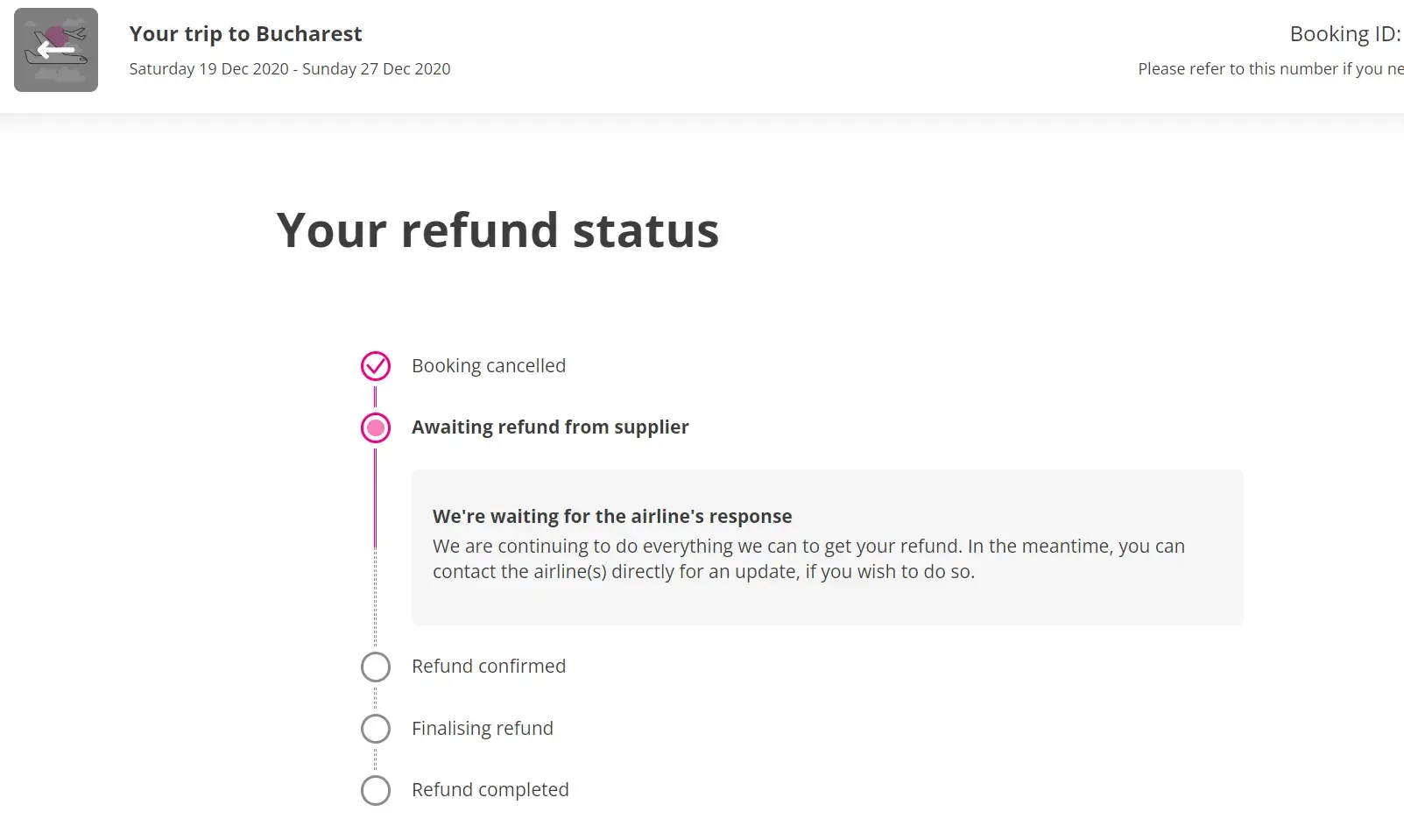 I had a flights booked via LastMinute for myself and two other family members to travel from London to Bucharest (leave Saturday 19 Dec 2020 and return - Sunday 27 Dec 2020). Booking ID: [protected] of a total cost of £539.44.