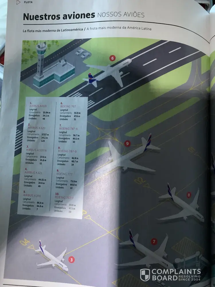 Finalmente recomendamos que mejoren el mantenimiento de sus equipos para poder mantener su servicio y cumplir con la propaganda abordó y en su revista VAMOS/LATAM, que tienen la flota de aviones más moderna.