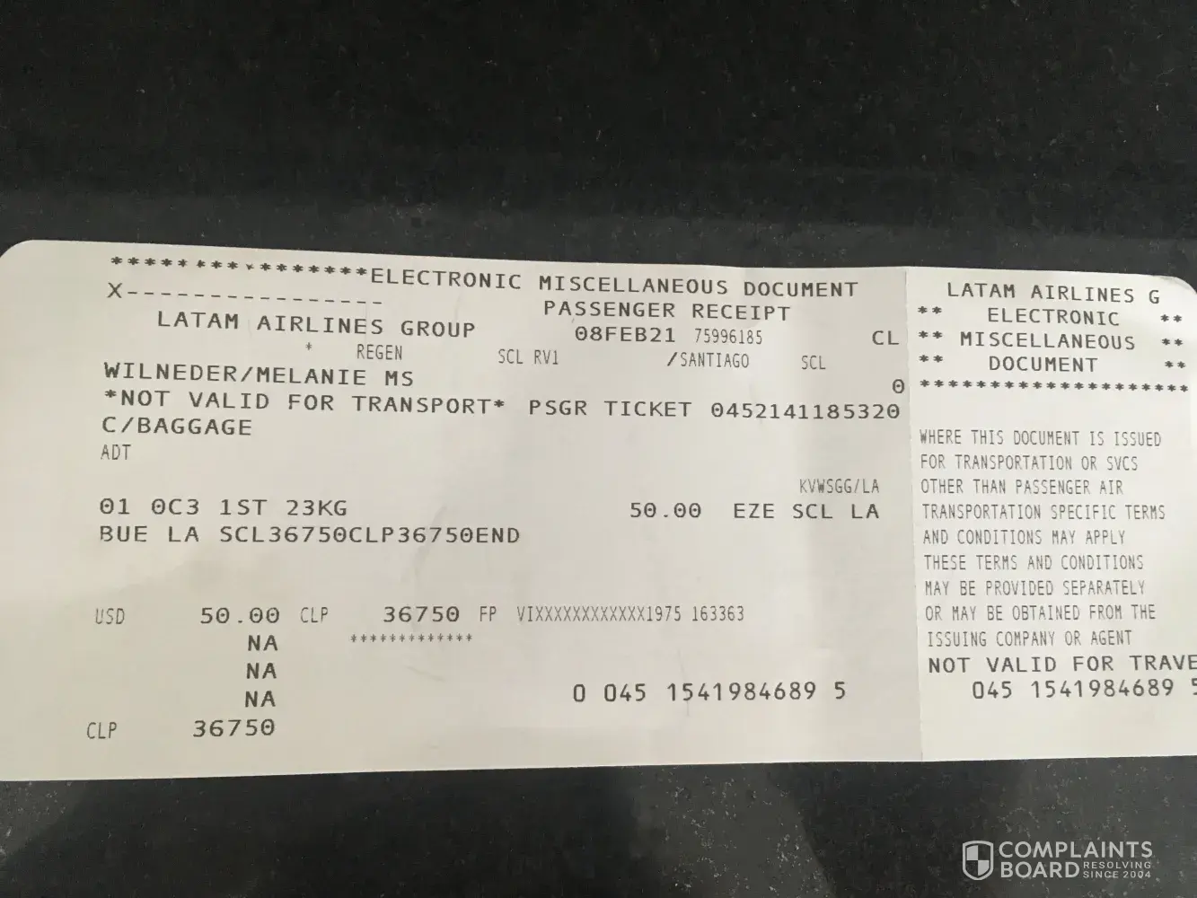 It's the worst experience I've ever had with a flight and I want compensation for my experience, I need a refund of the stolen money and someone from Latam to actually respond and fix the problems!