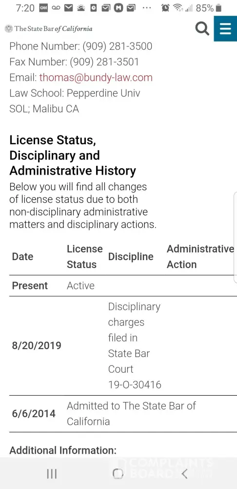 CA state bar filed disciplinary charges against thomas m Bundy, check the website
