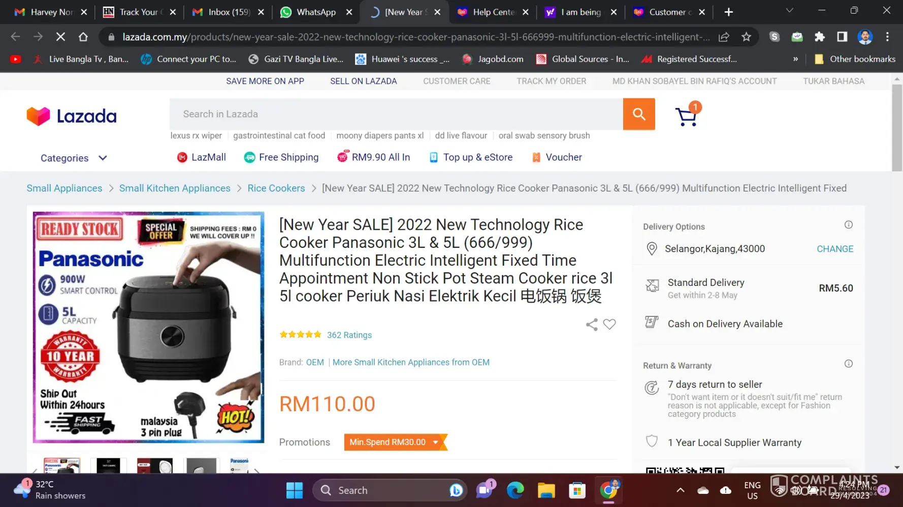 I was looking for rice cooker in lazada.com. my on 28 april 2023 and found a Panasonic product on