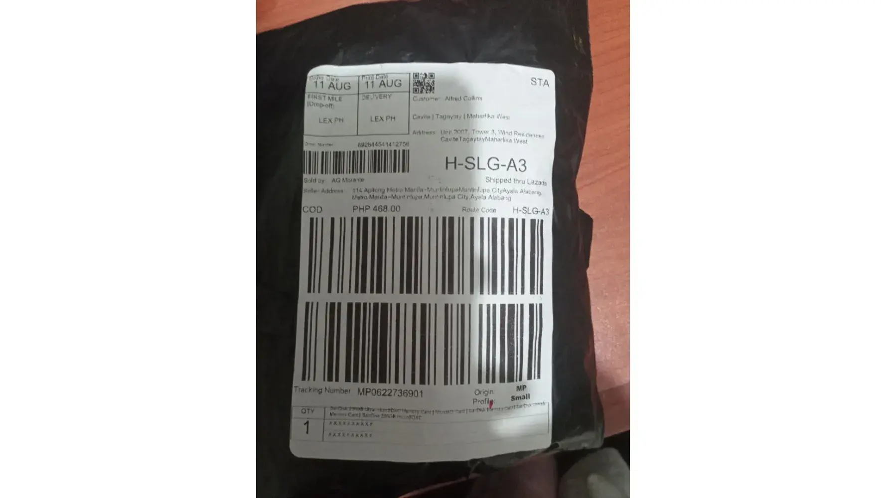Mon, Aug 14 I reported using the Lazada Android App that I received package with Lazada Order number [protected] and Lazada tracking number MP0622736901 address to me Alfred Collins at my address Unit 2007, Tower 3 , Wind Residences, Cavite, Tagaytay City, for Php 468.00 COD, which I Paid. This order is a SCAM. Contents are TRASH ! See photos.