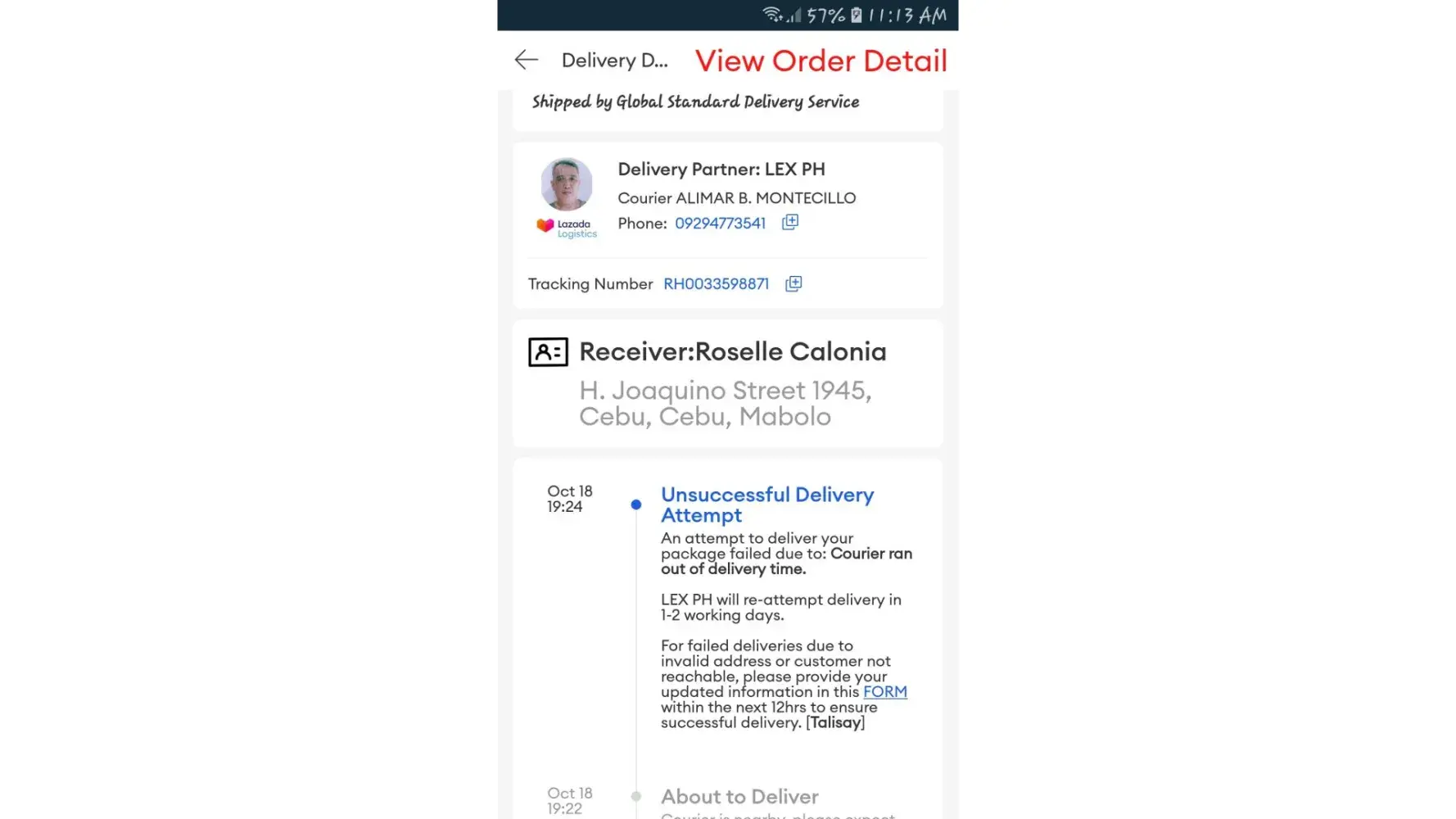 Lazada Southeast Asia Not able to locate the shipping item