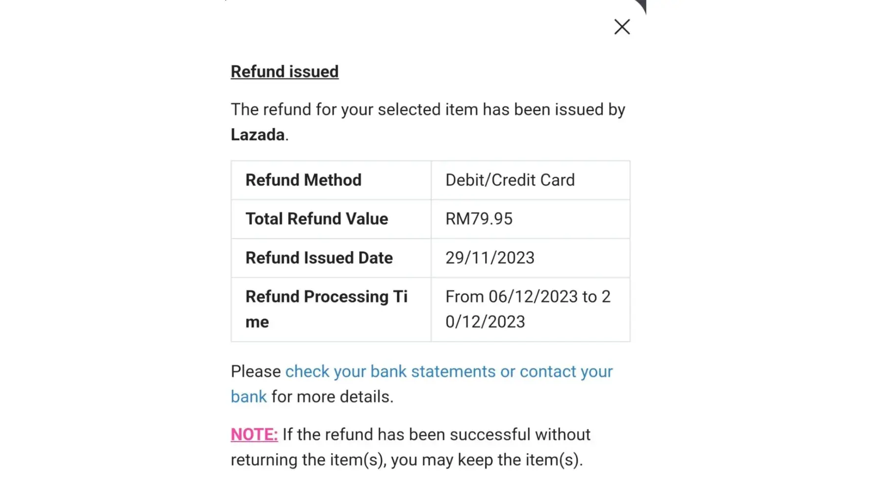 In this situation, I want my refund and I wish LAZADA to take necessary steps to keep its name and fame.