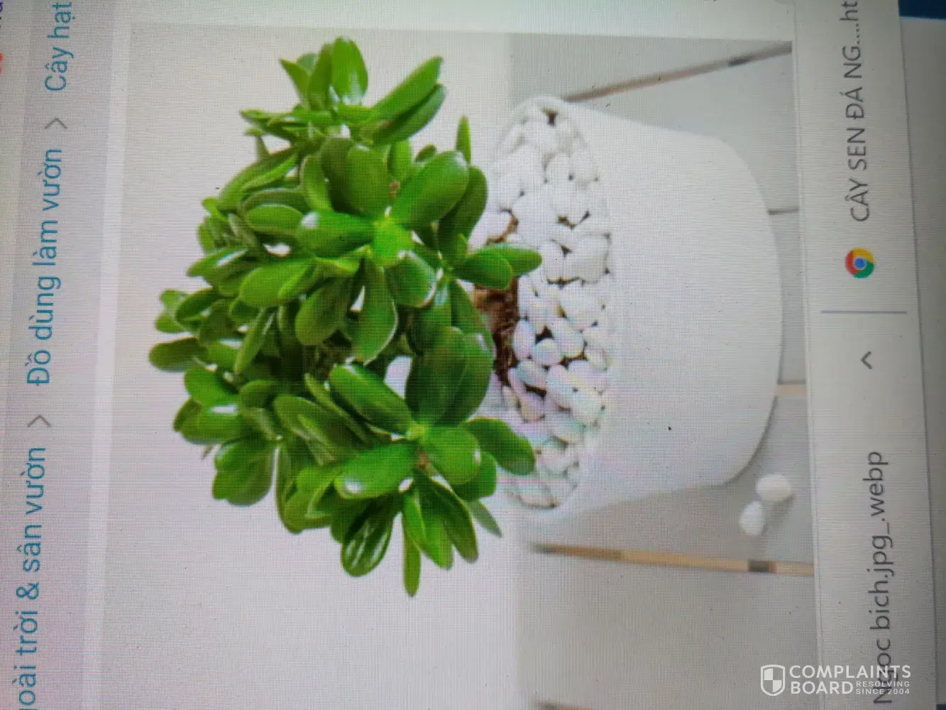 Ngá»c BÃch tree: Lazada VN delivered dead tree in cheap plastic bottle versus alive tree in ceramic bottle as picture advertisement