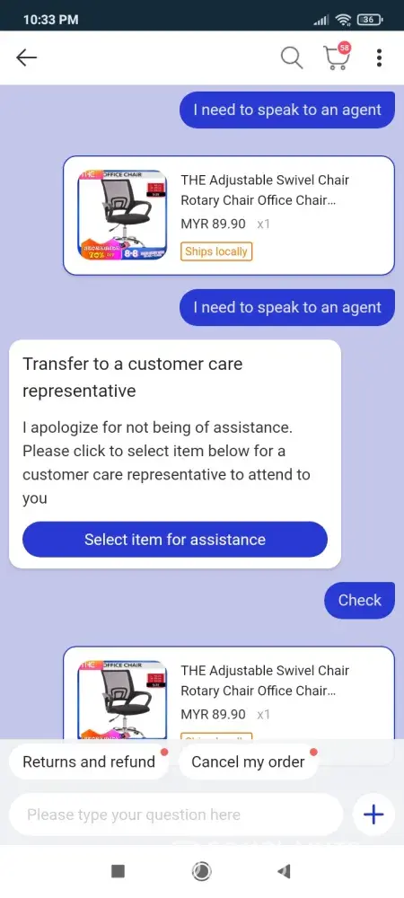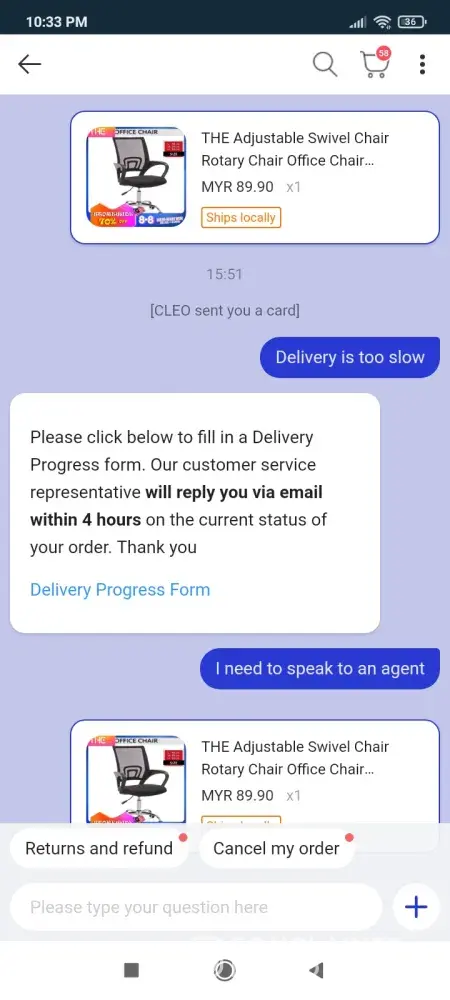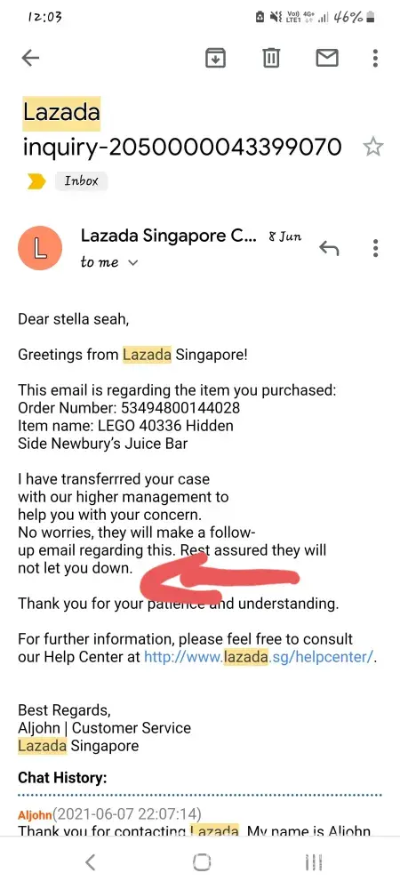Keep on emailing the "automated" email to please customer saying Lazada is concerning customers! But the more automated email without solution you get from Lazada, the angrier you are!