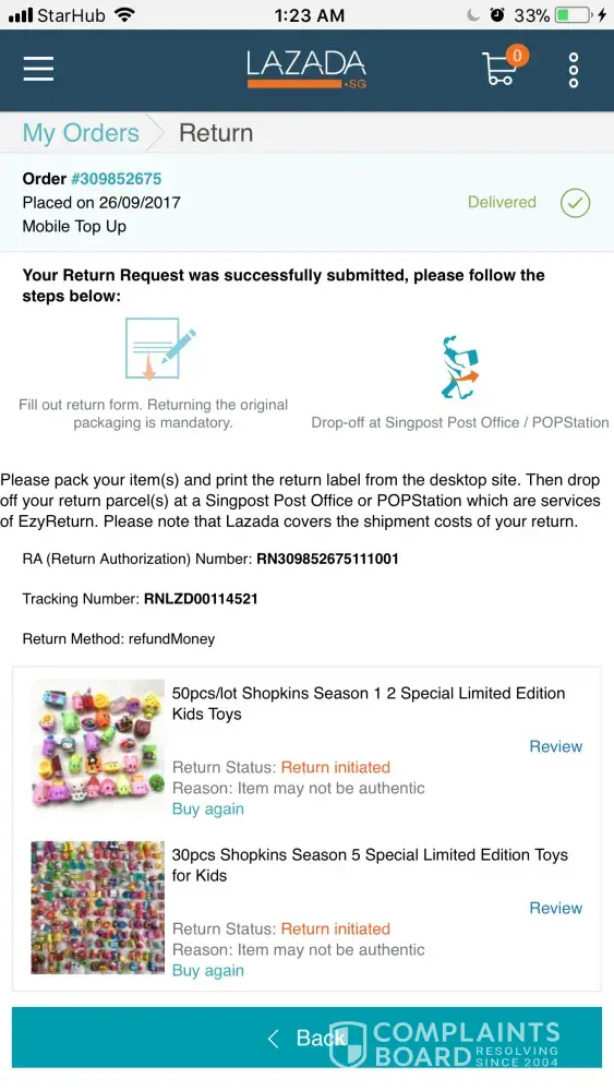 Lazada Southeast Asia products returned but money not refunded