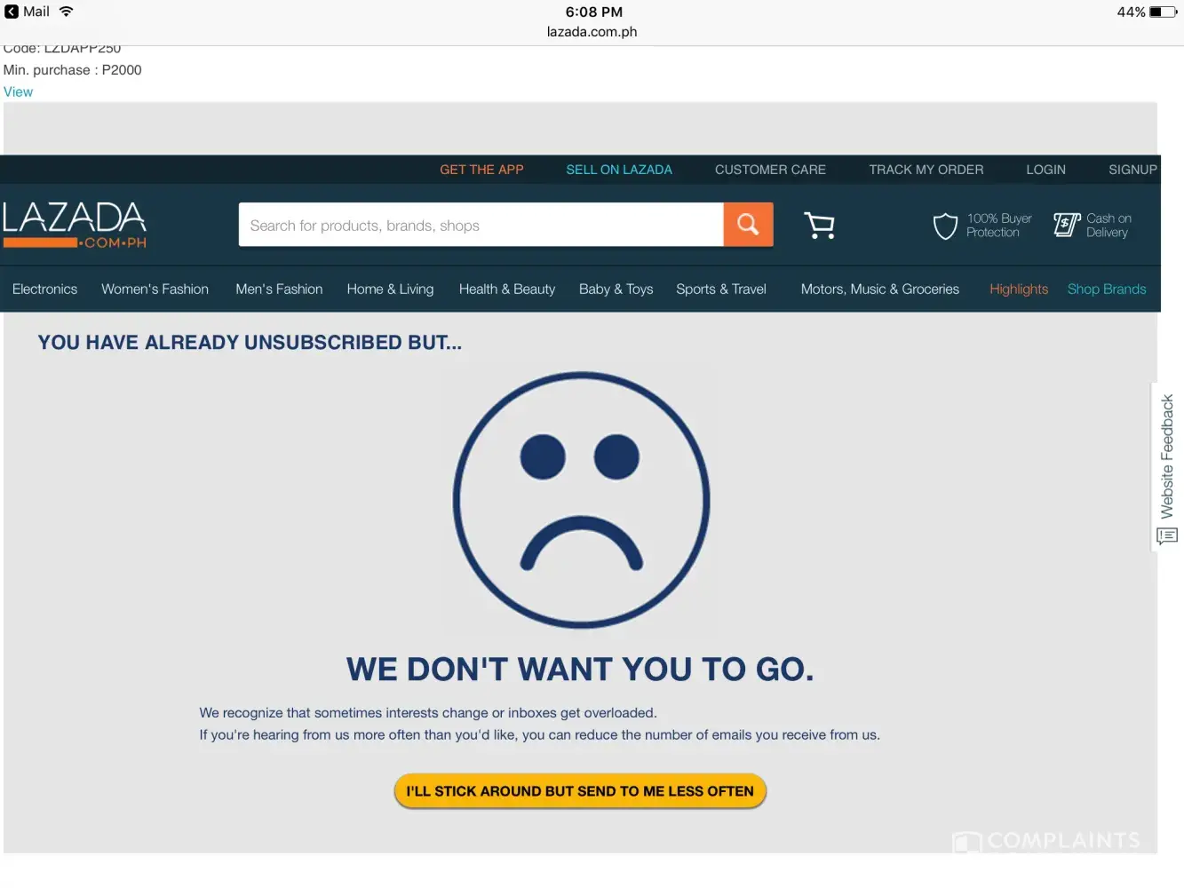 LAZADA if you are not going to work on this i would definitely not going to stop spreading this message over and over again. You better fix your unsubscription page. I am truly not happy. I am so annoyed with this whole ordeal.