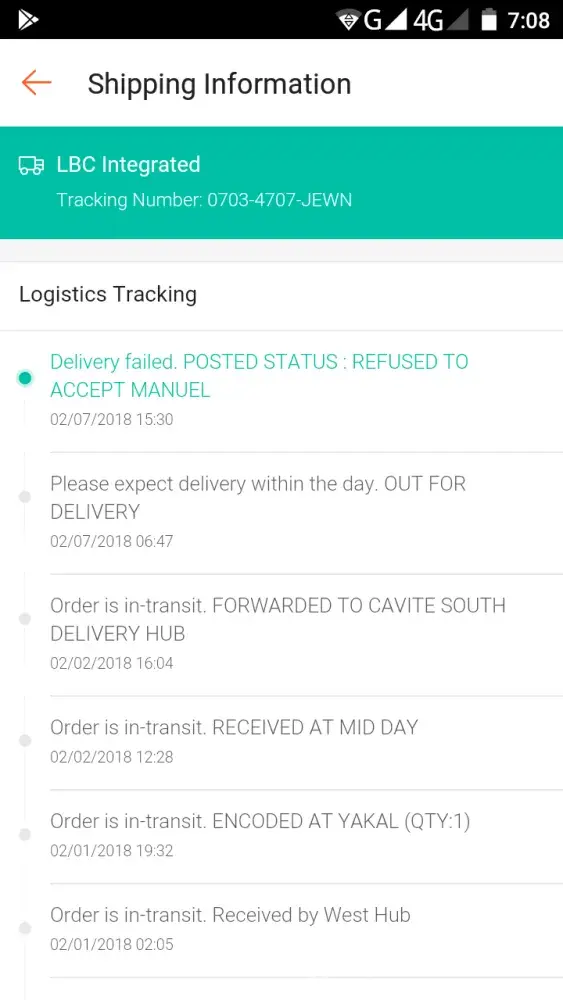 Shipment is with concern. Please get in touch with us through our official customer care channels. Mayroon akong inorder sa shoppee na may tracking number na [protected]. Nung first day nang pagdeliver mga 5pm dumating daw yung padala tapos hinanap ako pero wala ako dun dahil may pasok ako sinabihan naman nang kapatid ko na pwede siya yung kumuha nang padala dahil iniwan ko naman sa kanya yung money pero hindi naman binigay yung parcel sa kanya at bigla lang daw umalis yung lalaki. Pagtingin ko sa tracker yung nakalagay is refused to accept daw yung nakalagay yung apelyido ko. The second day dahil sabado andun lang ako sa bahay at nakita ko sa lbc na ready to deliver na yung package. Naghintay ako pero walang dumating. Tiningnan ko sa lbc nakalagay ulit na refused to accept daw pero wala naman may pumunta sa amin. Ang mas malala pa yung nagrefuse daw is cnee yung pangalan ni hindi ko nga yun kilala. Tapos ngayon ako pa daw ang kailangan magcontact sa kanila dahil daw may concerns yung padala
