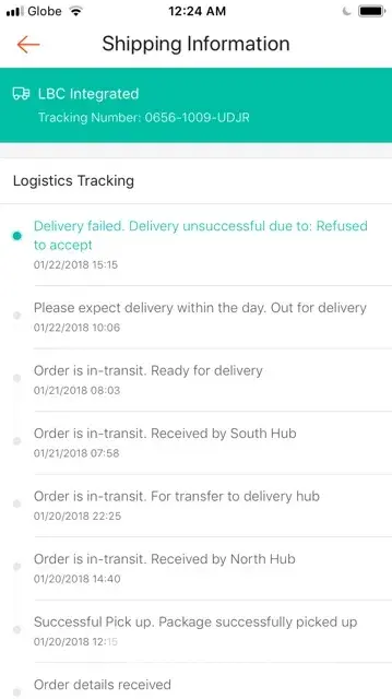 I had a COD delivery in shopee with LBC courier reference tracking #[protected]-UDJR expected to arrived yesterday Jan 22, 2018. Delivery place were at my work, I was out of office that time but I left my payment with my co-worker in case of delivery. As per our guard on duty and my co-workers no LBC delivery arrived at the office. Until in the evening, my seller contacted me asking why I "REFUSE TO RECEIVE MY ORDER". Your deliveryman didn't do their job, how can I refuse my order e hindi nga siya(deliveryman)dumating, he didn't even call/ texted me to inform that my delivery will be arriving. Then why Return to Seller right away, he didn't even had a 2nd attempt of delivery? Please take immediate action on this..