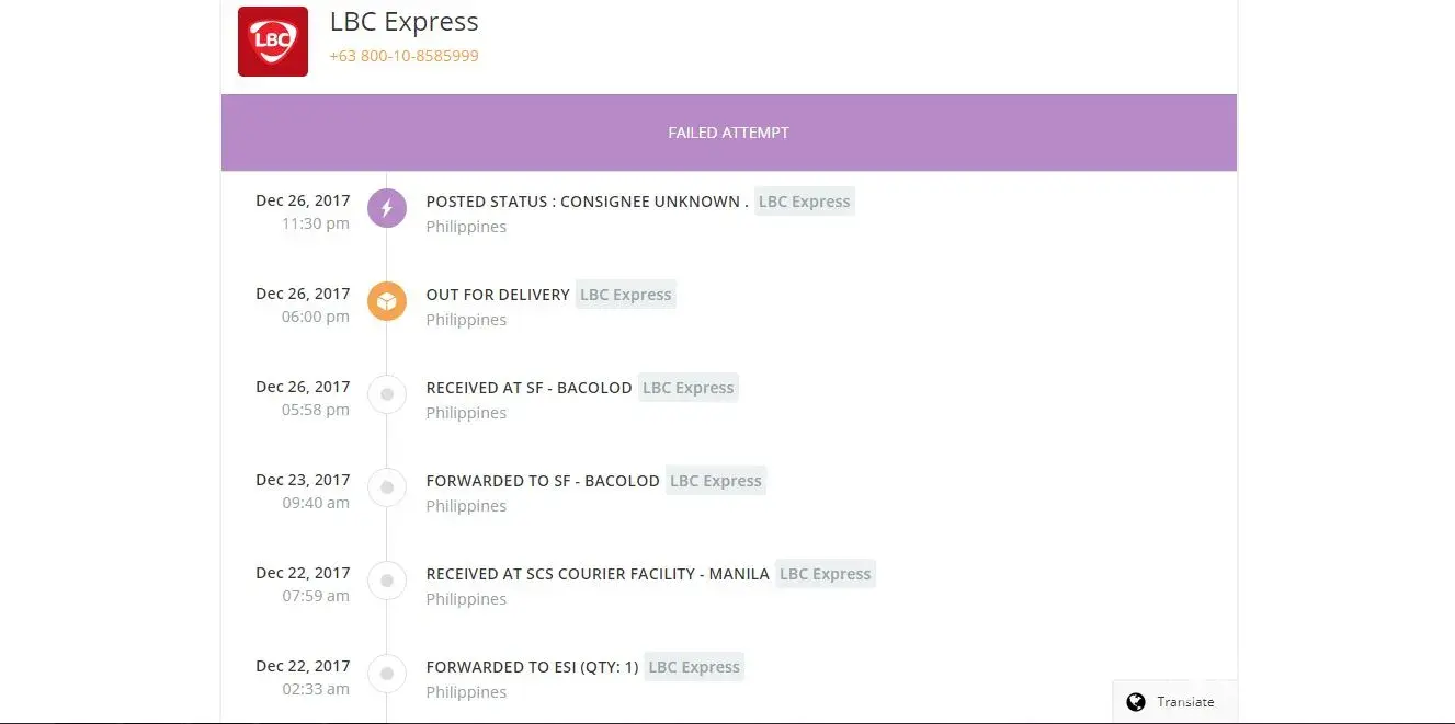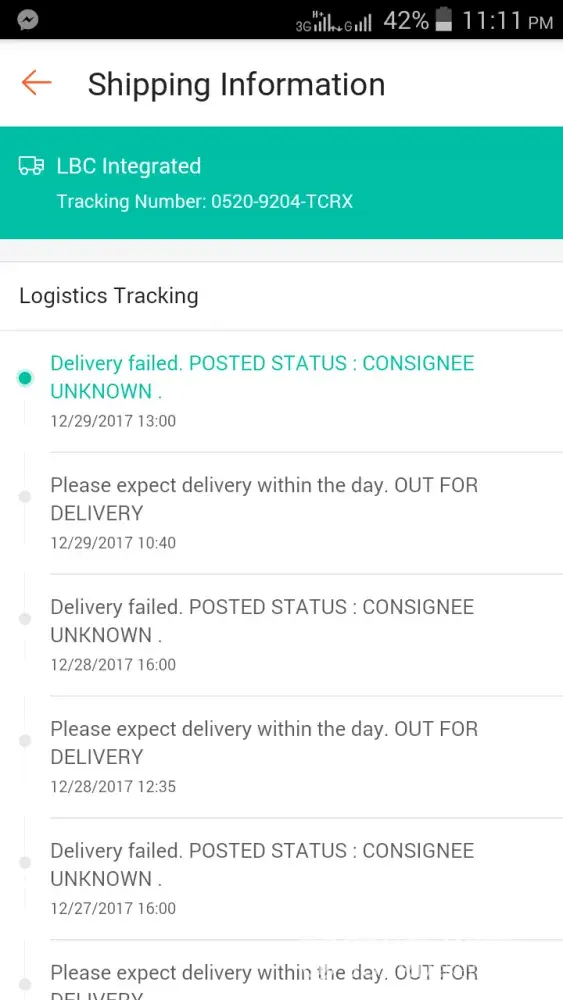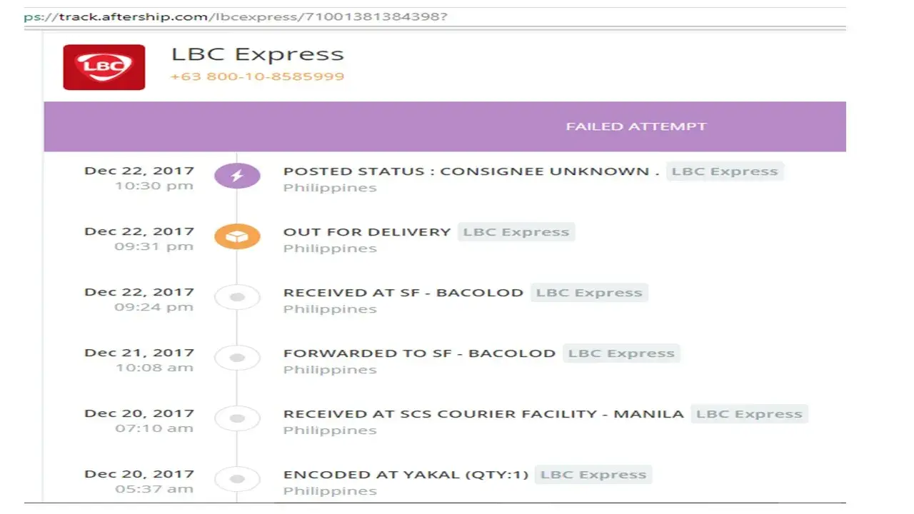 So I've been waiting for my package from shopee, I havent received anything and now it's going back to the seller, they posted that it'll be out for delivery on 19:21 then 19:23 they say delivery failed no payment, I dont know how to contact LBC, my supplier contacted the LBC and fix this matter but They still posted in logistics tracking that it is now in transit back to the seller.