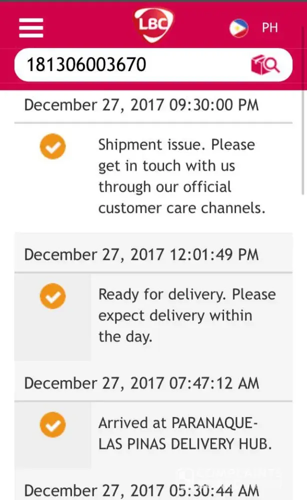 I called Sir Ian thru his cellphone. He just get the tracking number of my order in Shopee then I ask for follow up and update.. But there was no update for 5 hours of waiting. I think the real problem is the courier itself. Very poor service from LBC. The last status of my order is