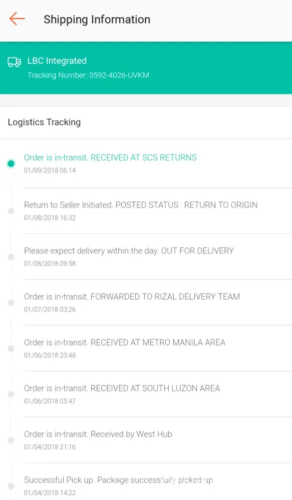 My order was out for delivery on January 8. Later, the status changed to "RETURN TO ORIGIN" meaning they are returning my order to the seller! They haven't reach me through text that they are on their way to deliver my order. They didn't contact me! and now they will return it to the seller! I called Lbc, they requested me call again to give the reference number of my complaint in shopee. I called again and they want me to give the tracking number instead and not the reference number! My gosh! Hassle! My seller can't give me the tracking number because it's Quiapo's fiesta and unluckily they are located in Quiapo. Now my order is in transit going back to the seller! The voucher that I used in my order will be expired without getting benefit form it! I need my order to be delivered as soon as possible but nah!