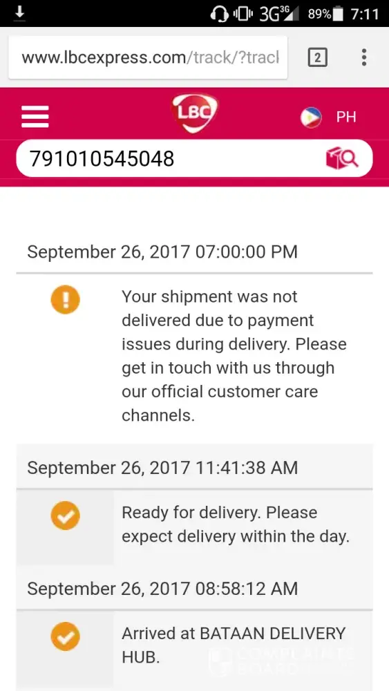 First of all I am an online seller. Nagplace ako ng order sa shopee and glad na lbc ang magdedeliver. Not knowing kayo pala ang magiging dahilan ng pagkasira ko sa mga buyers ko. Pinick up nyo yung orders ako 1st week of September. Until now wala pa! The hell guys saan ko hahagilapin ang mga items ko if untraceable pinaglalagay nyo! At saka yang mga riders nyo ha puro sinungaling! Maglalagay lagay ng remarks of me refusing to accept it eh wala ngang humaharap sakin para magdeliver! Fix this [censor] before I see for any legal assistabce that I can file against you!