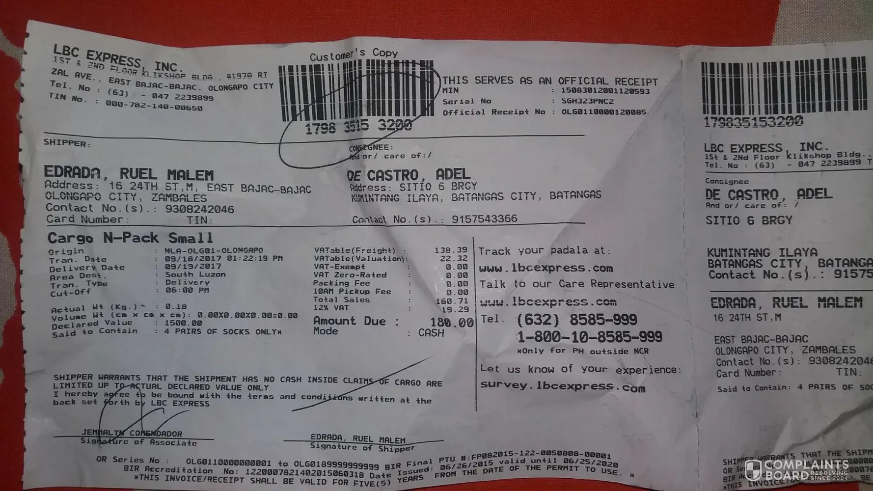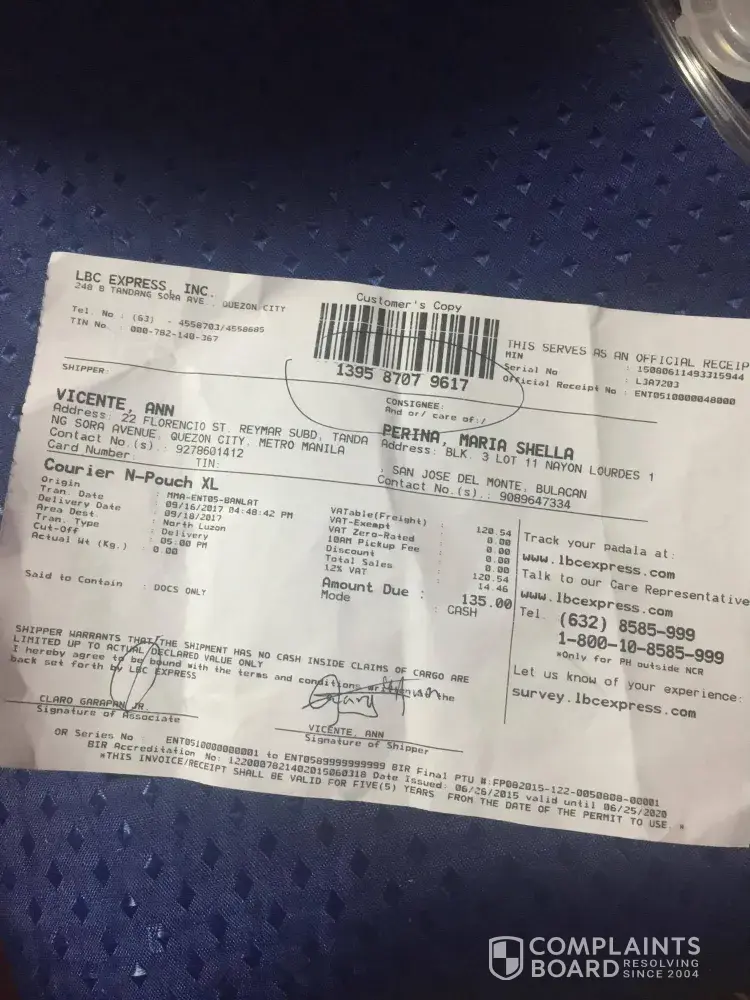 May reklamo na ako sa LBC SM North. Yung document hindi nakarating kay Romeo Alejandro 5th Floor Y Tower II L.L. Liveste corner Gallardo St. Salcedo Village Makati (Tracking [protected]). Maraming beses na kaming nagpapadala diyan sa LBC branch sa Market, Commonwealth Q.C. dito lang nagkaproblema sa SM North branch. Sa Web site ng LBC tracking menu na received daw ni Ruel Manalili subalit walang employee o security guard na ruel manalili. Baka kasi sa ibang building ibinigay ng messenger o naiwala niya yung mga delivery batch niya kasama din doon yong kay Julie Arceo tracking [protected] na ang dahilan incomplete addresss daw (PH9 Blk 12 Lot 15 PKG 1-A Bagong Silang Caloocan City) sa record ninyo maraming beses na kaming nagpapadala kay Julie Arceo wala namang problema, pero sa SM North problema na. Please investigae dapat makarating yung document sa kanila. My CP [protected]
