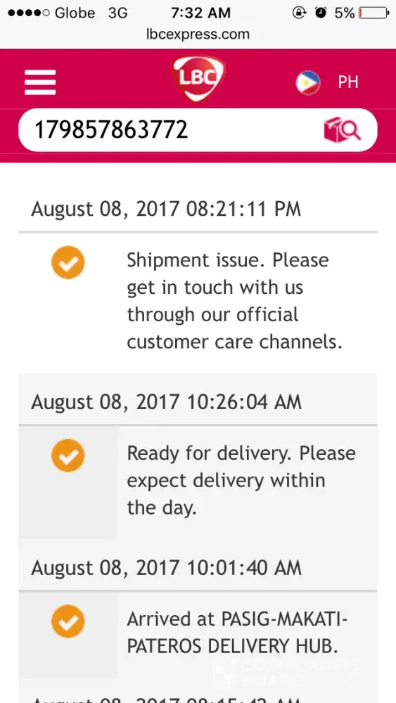 LBC Express shipment issues