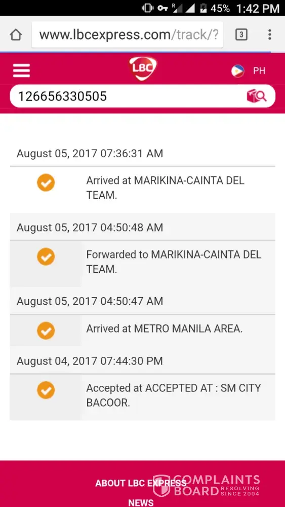 LBC Express shipment issue