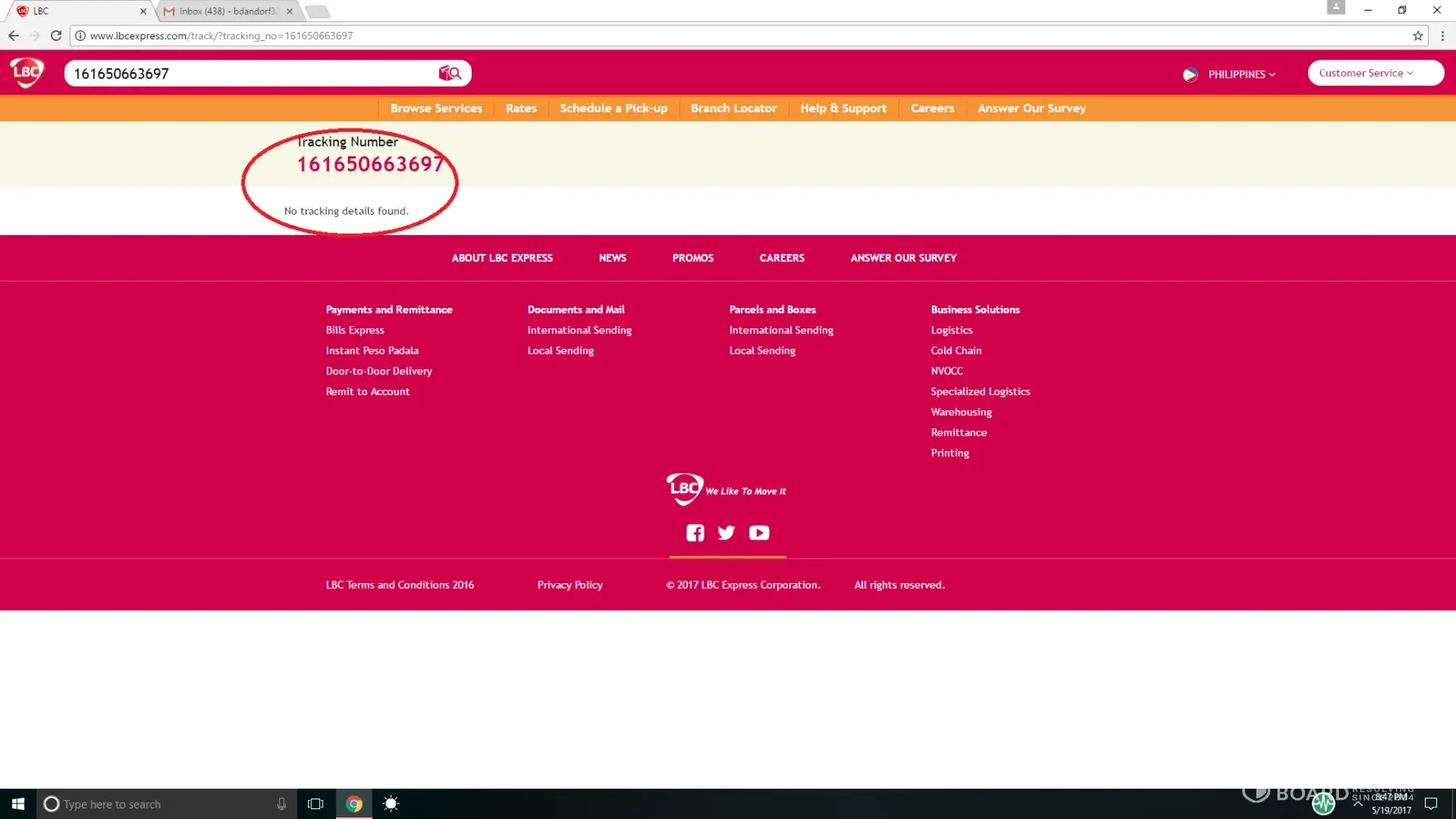The consignee went back to LBC Trinoma on May 6, 2017 to finally get the package, since it is only on weekends that she has free time. Unexpectedly, she was asked to pay for the shipping fee since the package has already went beyond the 10-day pick-up rule of the company. She was forced to pay P185.00 even after fully explaining the incident.
