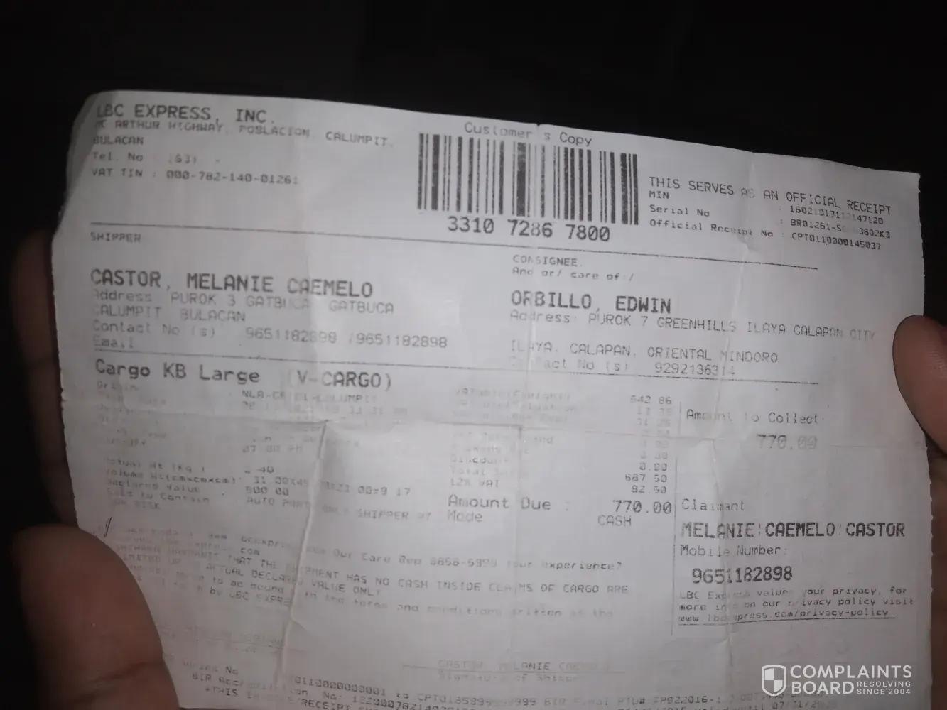 The COP COD did not yet refunded. The cargo already arrived 3 weeks from now but still no text message received from LBC Calapan Branch. It took me almost 3 times going to our LBC Branch to get an update about my complain but still no action done.