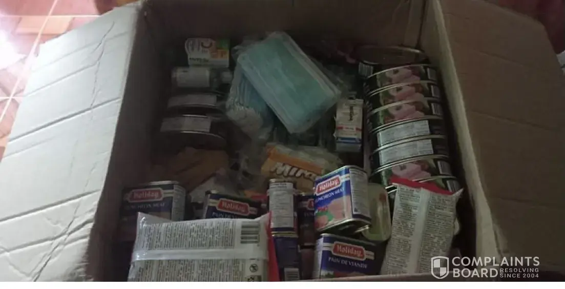 I send my box over a month ago when my parent received the box on sept 6 it was torn open and 15 cans of food and 6 pack of soap was missing.
