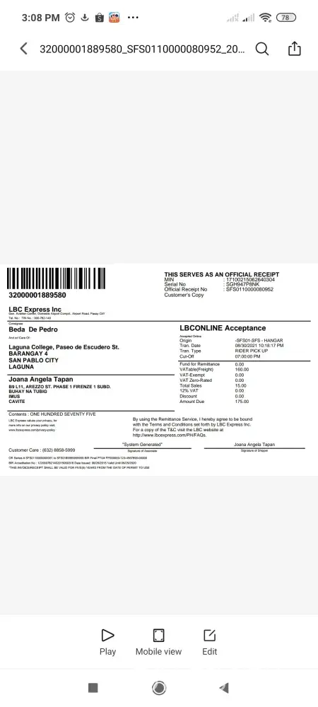 Hi I'm Ronalyn Flores, LBC automatically send message upon the delivery of my parcel on the said day. however I did not receive any parcel from LBC, I thought it was due to typhoon but upon tracking it indicates that it has been successfully delivered even though I don't receive anything. I am so worried since these are some important documents from my work. I also call to the customer service and they advise me they will request retrieve however there's no update yet. They just get my contact number.
