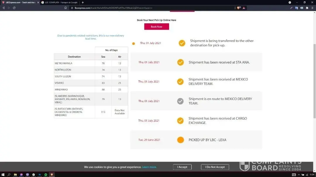 HI Ma'am Danna, may we verify if your shipment is already on hand? Based on our system, the shipment already picked up at LBC Gaisano Mall Tagum branch dated 06/29/21. Should you have further concerns and inquiries you may reach us on the below LBC official channels. Thank you. -Cha, LBC Customer Service Associate