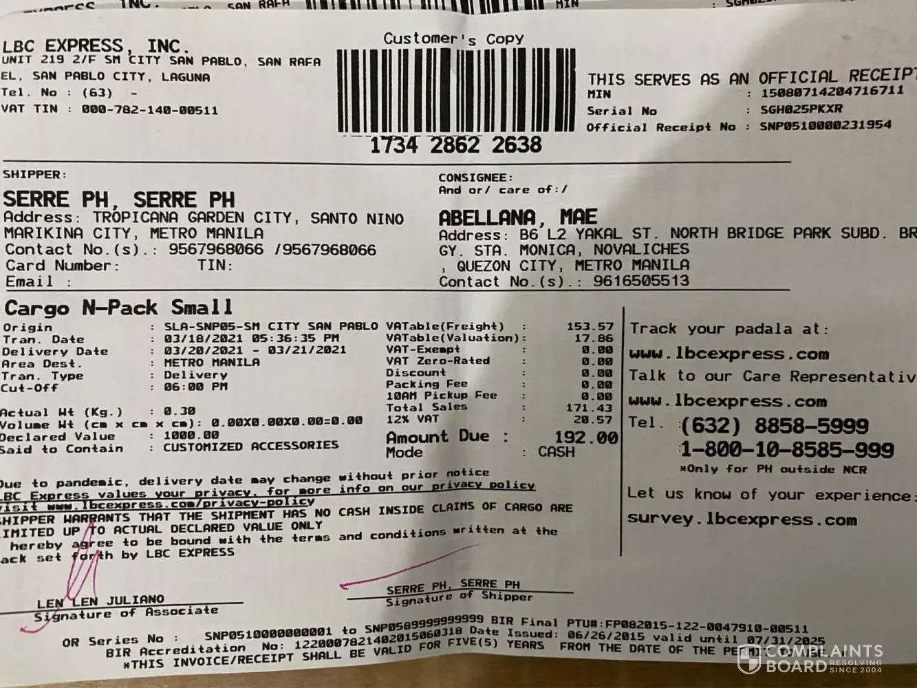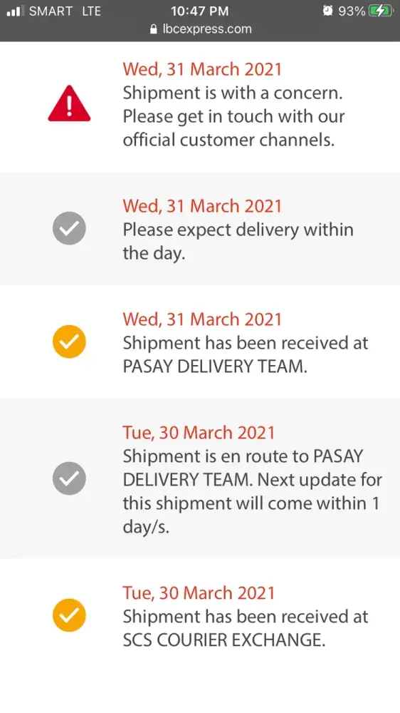 LBC Express Shipment delayed