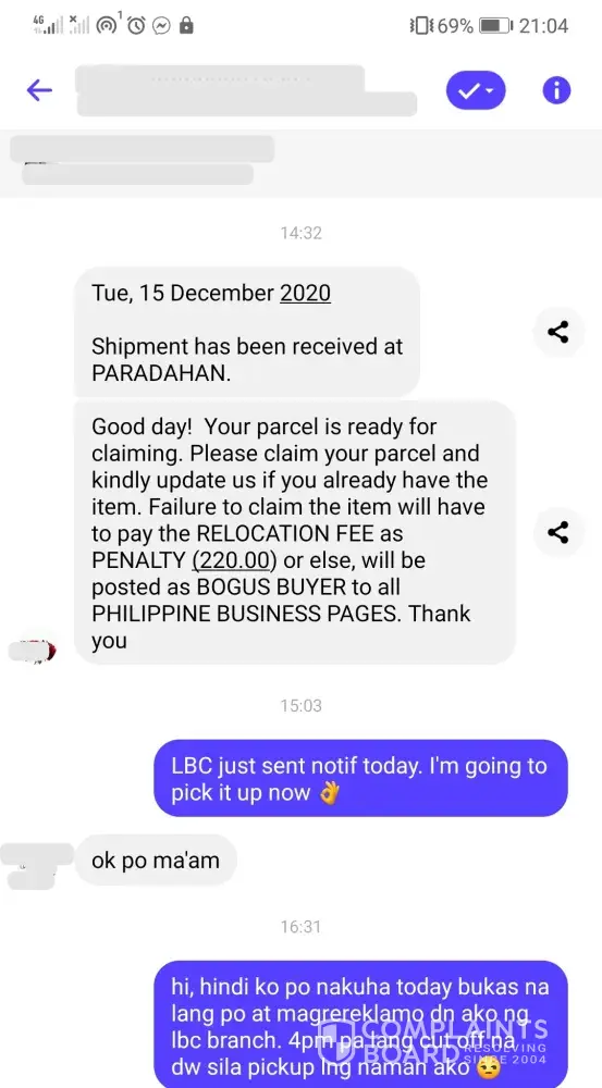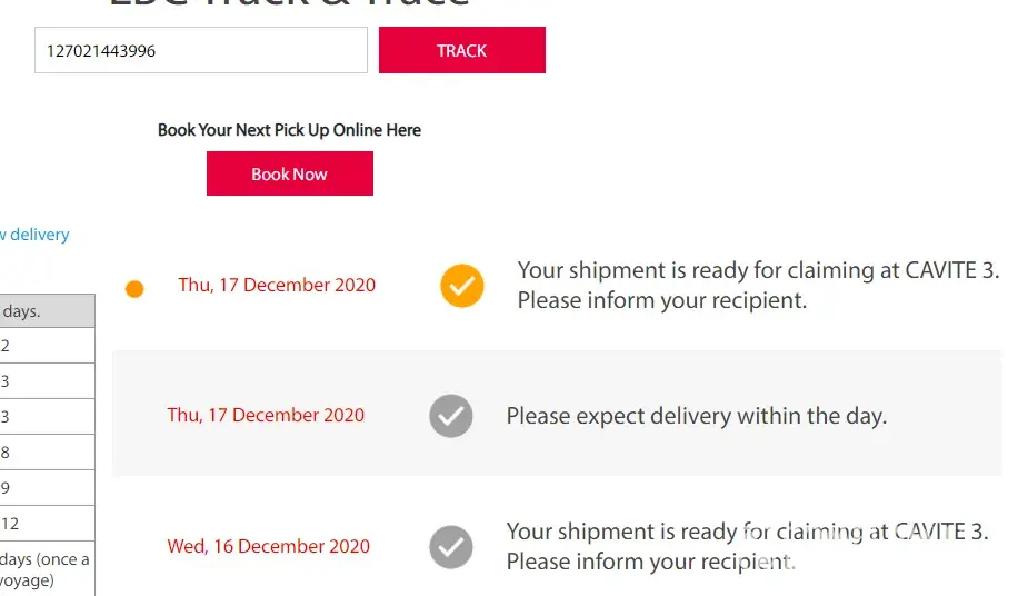 In addition, my package subject for cash on pick up has arrived Dec 15 as per my seller but LBC just sent notif today, Dec 17 (two days aged) given that it will be returned to seller if not claimed after 3 days.