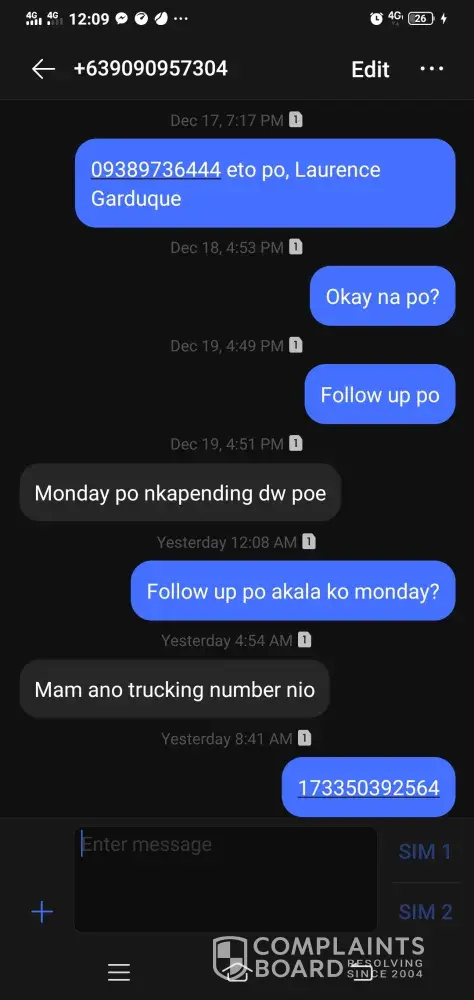 Nabura ko na yung ibang text sa akin pero sana gawan nyo ng paraan sobrang naabala na ako yung pera ko na dapat mapapakinabangan ko na hindi ko pa makuha nag babayad naman ako ng tamang shipping fee sa inyo