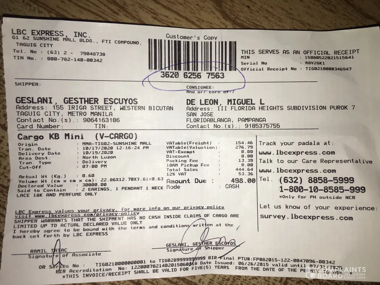 My client has sent an important documents but i still don't receive my vpouch. It was supposed to be delivered last November 1 but until now i haven't received any call or message from the LBC which is because they did not put my contact number in the consignee's details. Protocol dapat na lagyan ng number ng consignee and they didn't even attempt to look for the correct address. Sana may common sense yung mgdedeliver Hoyo Rd naging Huyo road 1 letter lang yung difference samantalang you can find our place on waze and google map.