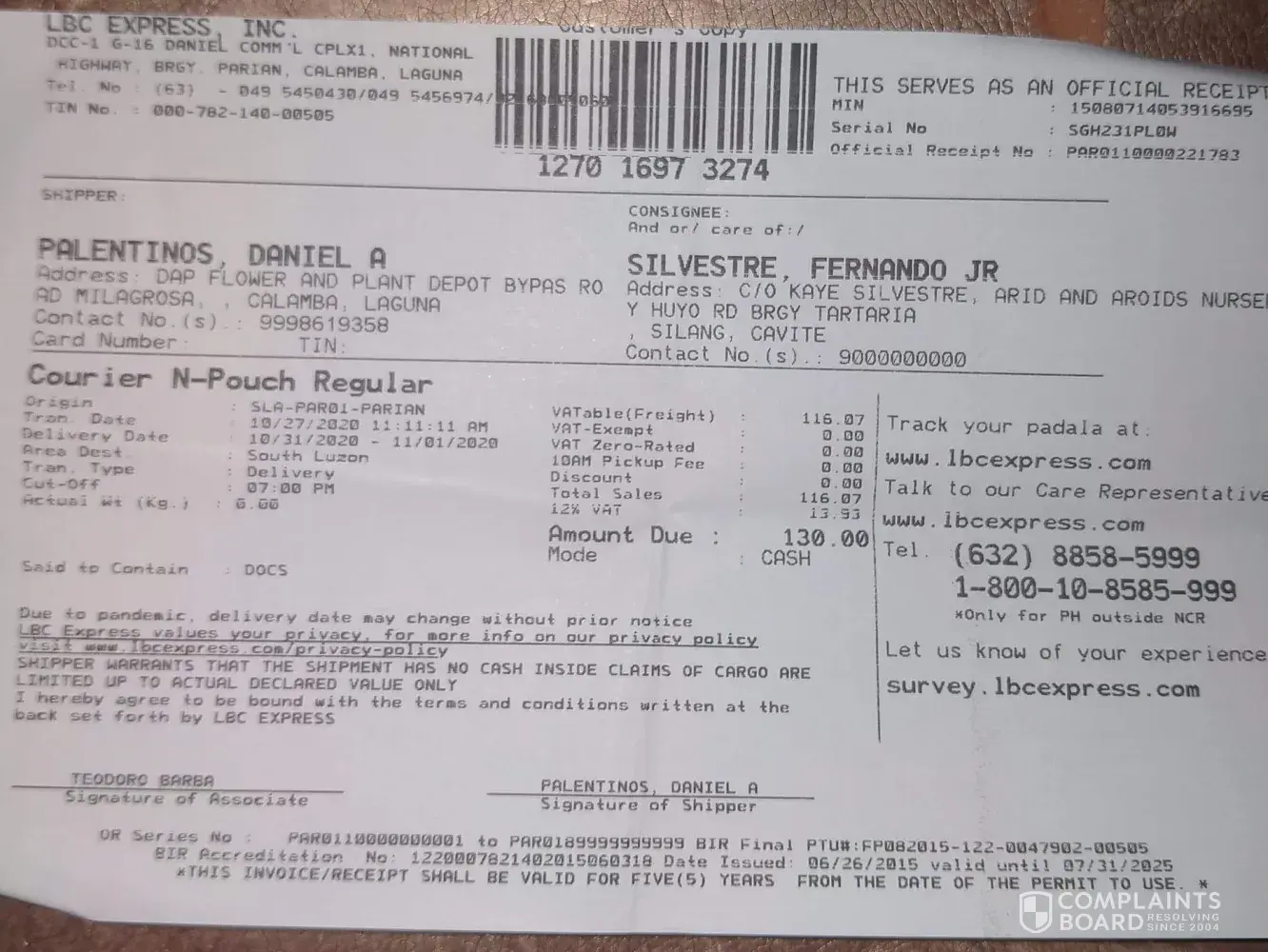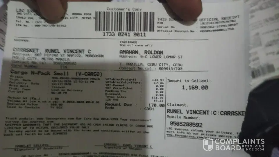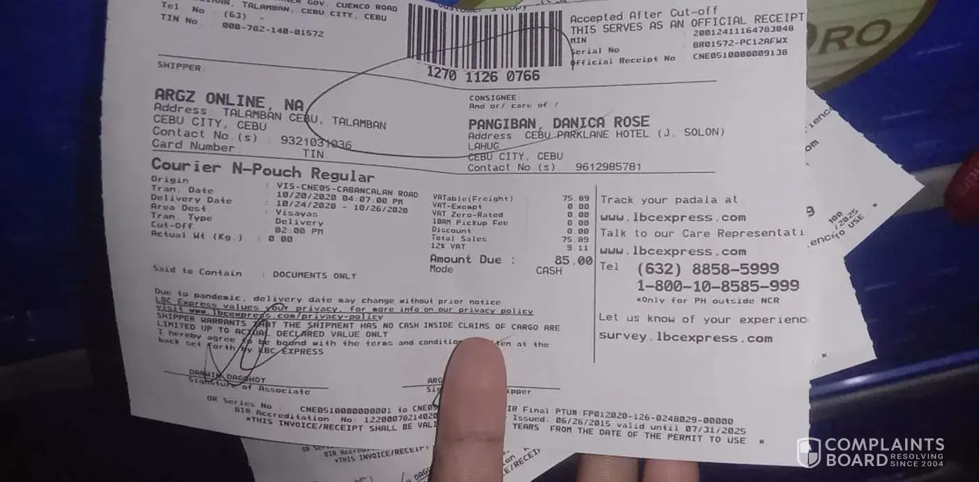 Hi. Last july 8, 2020 they sent the item which I ordered online worth php1000 through lbc at kiko camarin. Due to the covid-19 issue, there are many travel restrictions per province which causes us not to claim the item on time. I was then busy on my work and was not able to follow up online using the tracking number which they gave me as what I am expecting is that your staff will call the reciever to notify that the parcel have arrived at their branch already. Recently, I just checked the status of my parcel online and it states there last september 20, 2020"shipment is en route to hangar-disposed from pending-hangar exchange. Next update for this shipment will come within 0 day/s.". Now my concern is that, considering the fact that there are many delays due to pandemic, since the day the lbc branch (lbc bonifacio tuguegarao city cagayan valley to be exact) received my parcel, why did they not call the receiver's contact # telling that the parcel is ready for collection? And on your site, the # posted there is unreachable? This day, october 29, 2020, my brother in law went at the lbc bonifacio branch to check on the parcel, as he only have free time to go as he is working in the hospital as well, he already showed to your staff the tracking # with clear printing and yet your staff still told him that they need the receipt? Like really? Your receipt is already faded and yet they still want the receipt and not the tracking #? Using the tracking # I believe that they can still trace it on their computer right? Yes, I admit that we have negligence on our part but do you guys really care about the parcel of your customers? Or your staff will benefit on the unclaimed parcel having those mind set that unclaimed parcel are for them already? Even though the amount of the parcel is not so big, still, someone is expecting to receive the item and yet you still don't care about it. I need an explanation and posible refund of my item if ever my parcel already disposed. You can send me email to [protected]@yahoo.com. I will be waiting for your reply as soon as you read my complain.