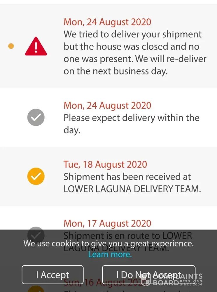 I shipped an item 10th of august. From 19th of august the status is arrived at sf cebu. And that was the last update. I have sent multiple complaints but i'm not getting any response from lbc.