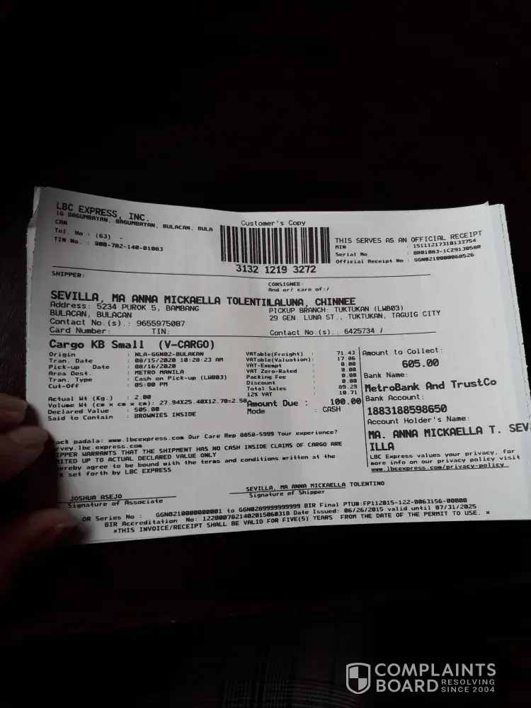 LBC Express My complaint is about the unethical behavior of one of your employee at lbc langkaan 1 branch