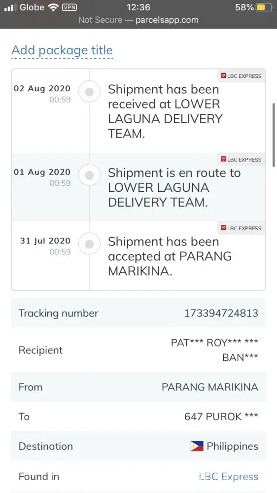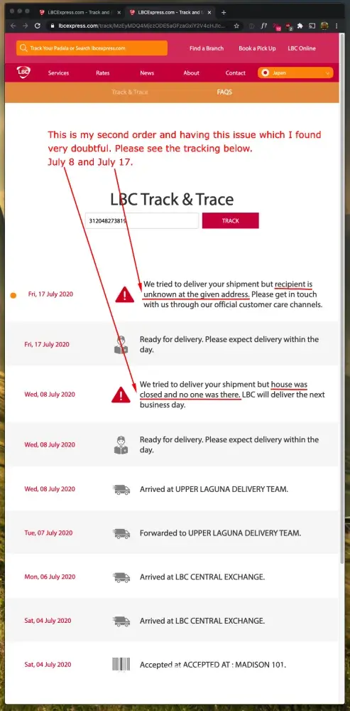 What took it so long, LBC? Worse is, the other parcel (tracking #[protected]) hasn't arrived yet! As I trace it's whereabouts, it's been forwarded to Cagayan Distribution Team since July 23.