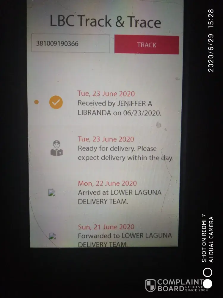 Now, we coordinated again to the same lbc branch and the same stupid staff informed me that the branch are near to the requested branch. This is very ridiculous as even it is near branch the point is she is the one who mistakenly provided a wrong address in the receipt which cause me trouble as well as my customer. I asked her to simply correct her actions and request a transfer. This happened a week ago and we can still see that the parcel is in the same branch as before without any progress.