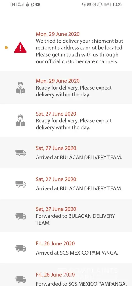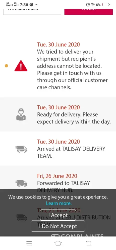 Gusto ko lang po e report yong delivery. The item has ben shipped last June 23. I understand that the shipment has been affected due to ECQ. I kep tracking my shipment. Finally the delivery is supposedly today but when I tracked the item the address of the receiver was not found daw. But i don't think the delivery man tried to call the recepient also. He didn't tried to call me too, the sender. Pls ff up. Thanks