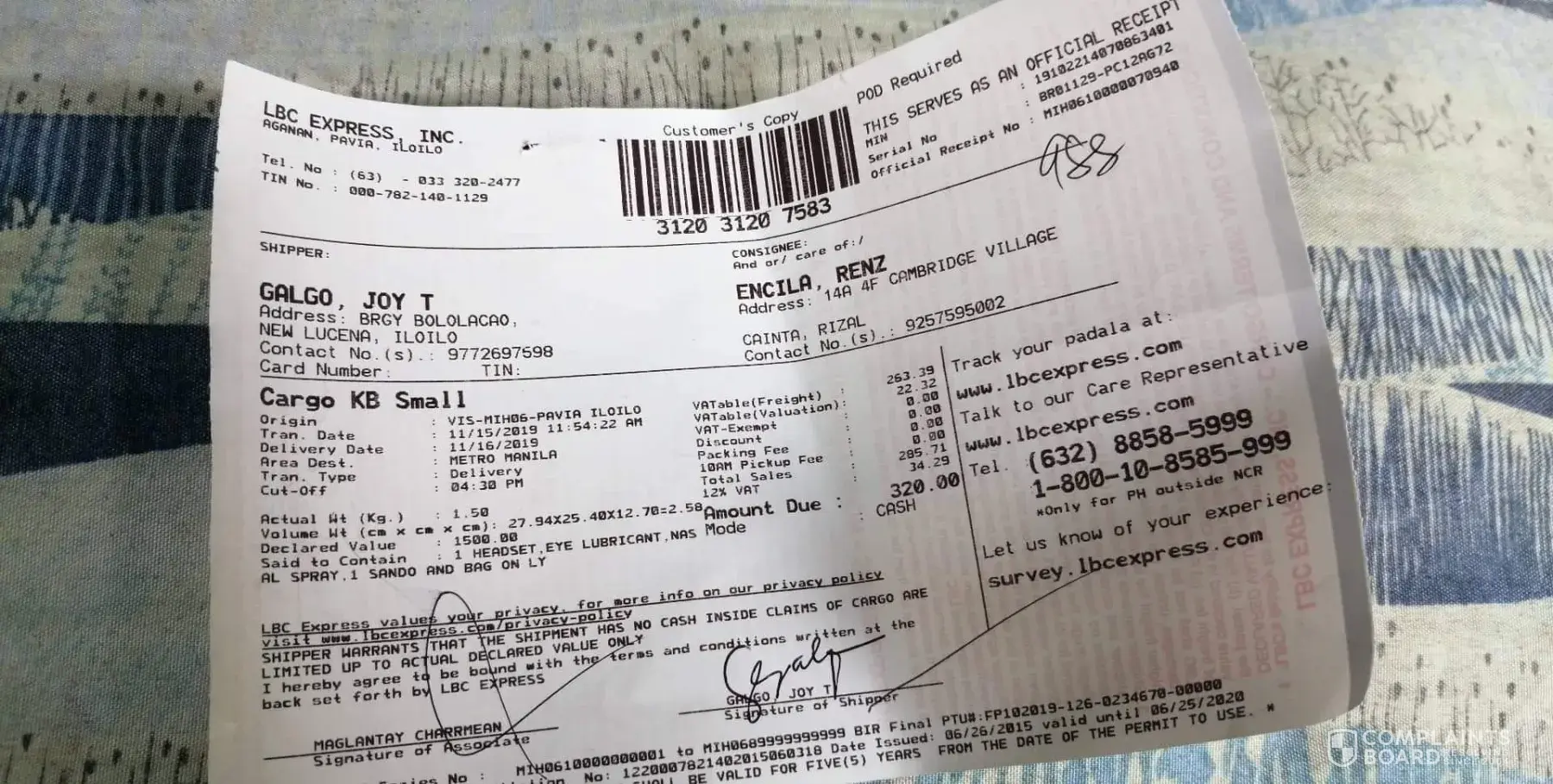On Novemeber 11, 2019 I received a message from LBC saying that my item will be deliver on that day. Upon tracking my item, it has been delivered on 11/11/2019 BUT I never received any calls, and I never received any item on the said date.