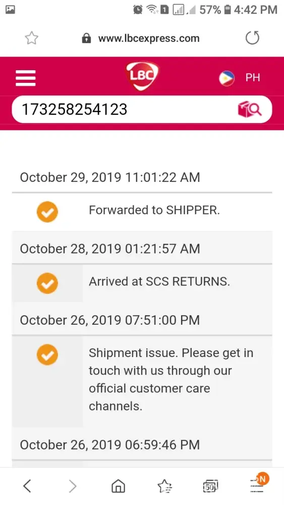 Ng magtry ako ng mga sumunod na araw nagulat ako na ang status na ng shipment at naforward na sa shipper?!