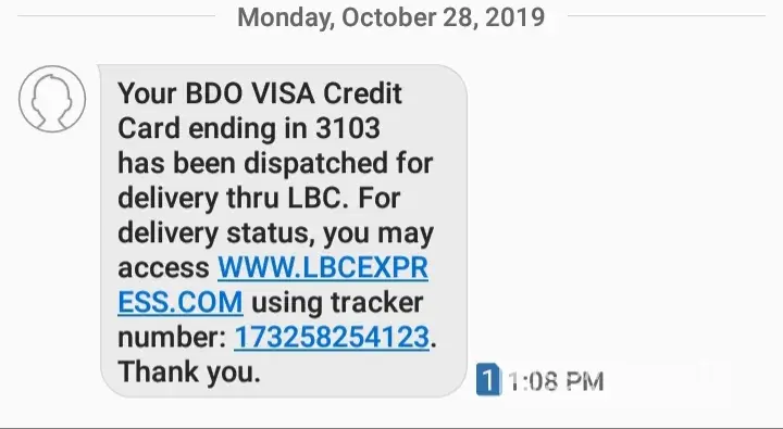 Last oct. 28, nakareceived ako ng text sa bdo na for delivery na un card ko at nagbigay ng tracker no. Pero nun chinicheck ko sa website no item found lumalabas.