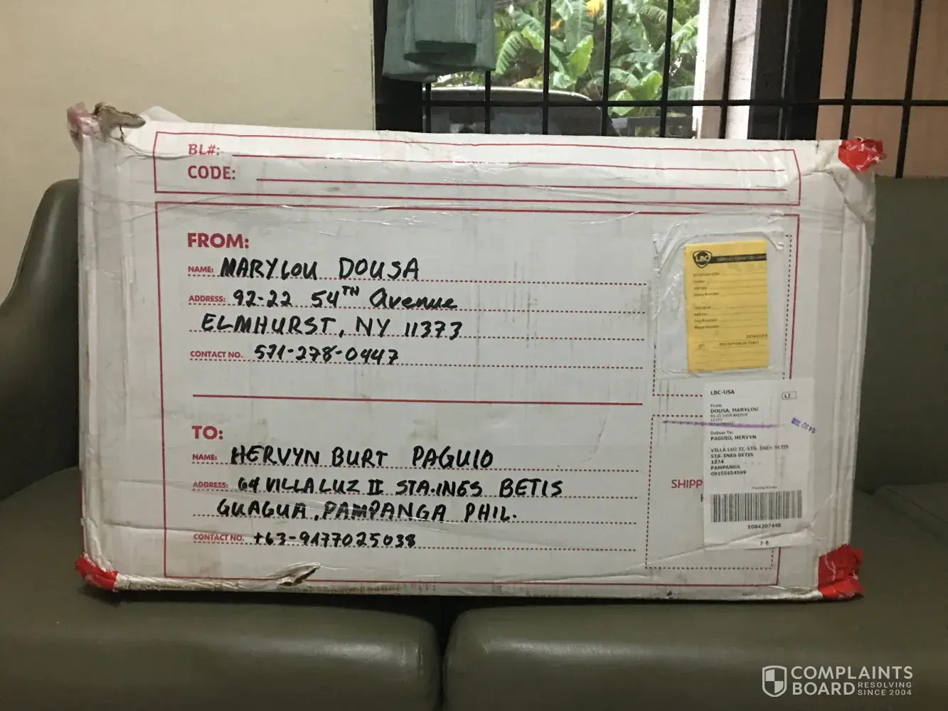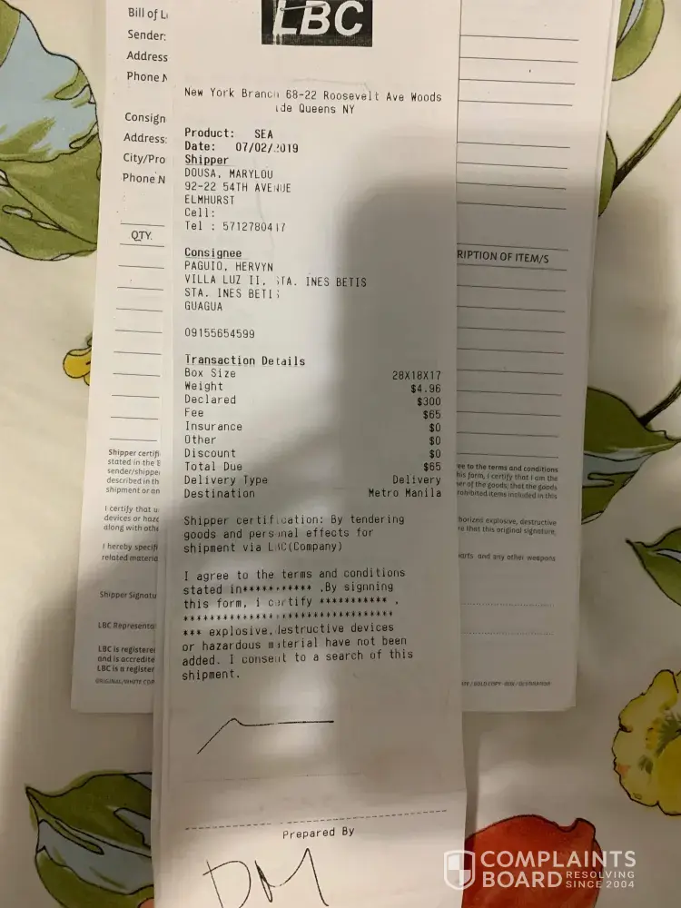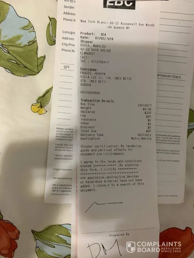 box sent to philippines not received by intended party