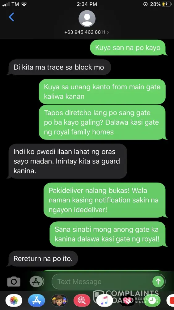 I supposed to receive an item from a seller today and this item just shipped yesterday, so I did not expect that it will be delivered the next day because usually for provincial areas it will take 3-5 business days. Today, the delivery man called me that he will deliver my item and it was so unexpected for me I asked him if he can just come back or wait for me to get my money from the bank because I don't have a cash with me to pay the item and he said okay. It was just a few minutes that he waited and when I want to meet him at the gate of our subdivision I couldn't see him so I asked him if he can come to my house instead because I reached home from the bank. Thereafter, he said okay then it took him a long time until I texted where his about he said he can't trace my home address and the rain fell down heavily I asked him if he can just deliver it tomorrow he said the item will be return to the sender already and I couldn't believe it because as fas as I know it will take two delivery attempts before the item will be returned. He answered to me so rudely that he was saying he doesn't have time to look and deliver my item to me. I did not get the delivery man's name I just have his number â€(0945) 462 8811. I am from Apalit Pampanga and the item is coming from quezon city it will be too much waiting to get the item again why can't they just deliver it the next day. You have numerous rude delivery man in your company I hope you can do something about this.